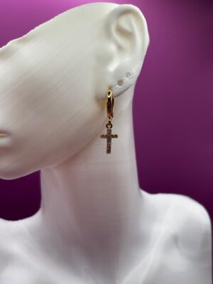 Brinco Argola Cruz Micro Zircônia Dourado – (Código do produto L16Ex)