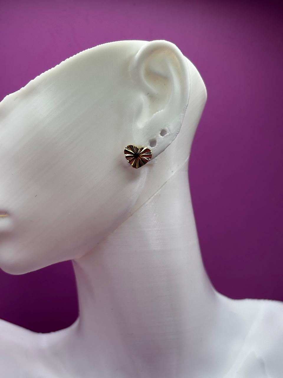 Brinco Coração Detalhado Liso Confeccionado em Banho de Ouro Amarelo de 18K.